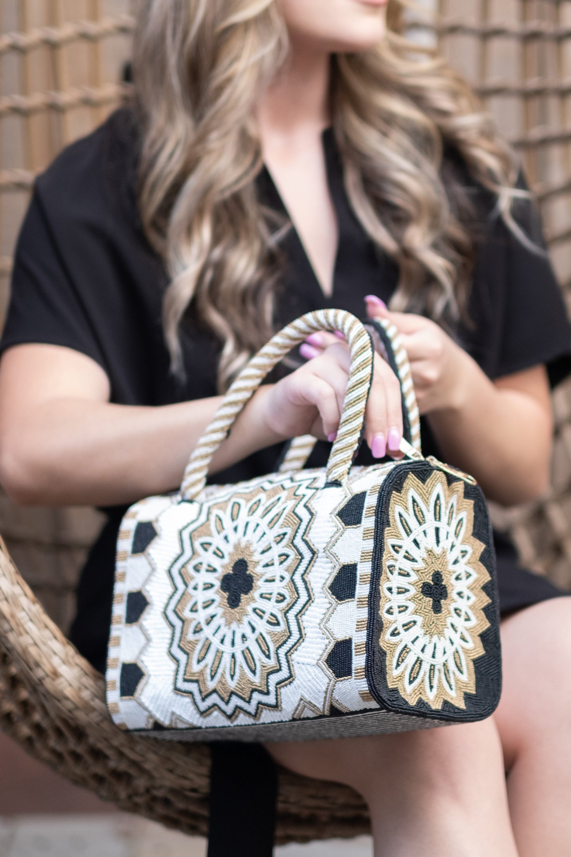 A stunning duffle bag fully adorned with intricate beads. This spacious bag combines elegance with practicality, making it perfect for any occasion. Lightweight and easy to carry, its designed to hold all your essentials while adding a touch of glamour to your look.